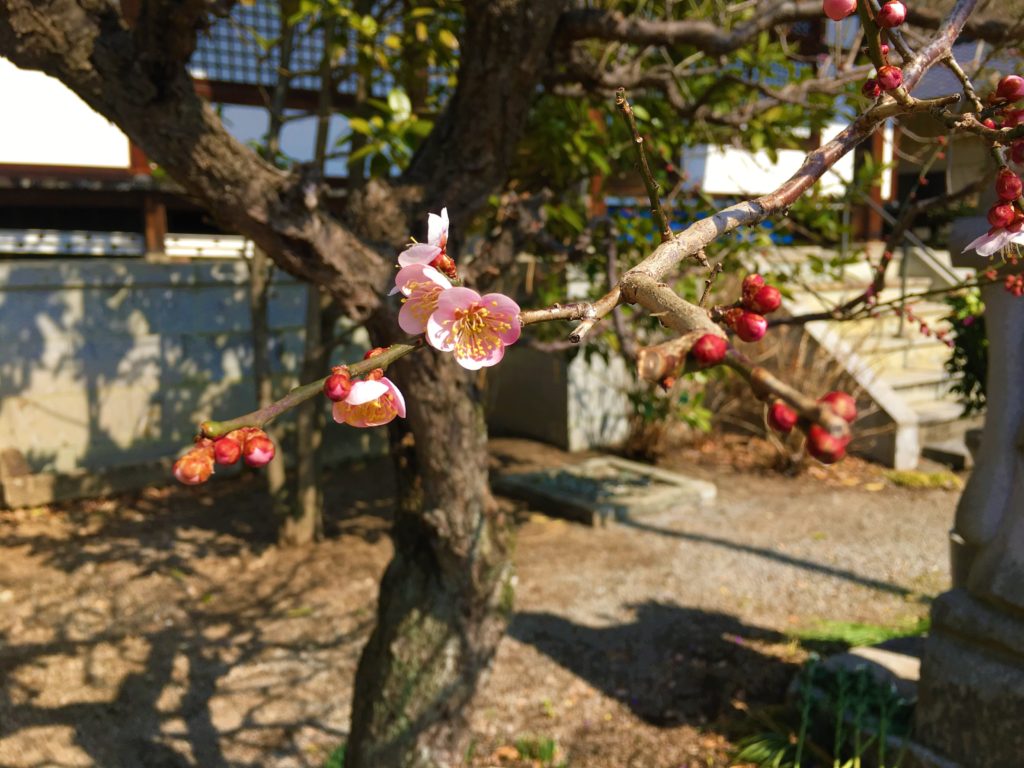 梅の花は今年初めて見ることができました。さっきの駐車場からそれほど場所は変わらないのにこちらは咲いています。確かに日差しが暖かい。いい香りも漂っていました。