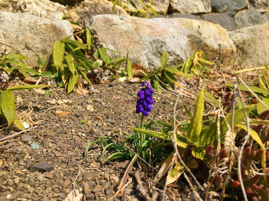 もうムスカリが出ていました。綺麗だけどかなり増えてしますとか。