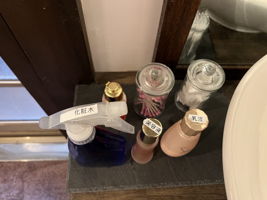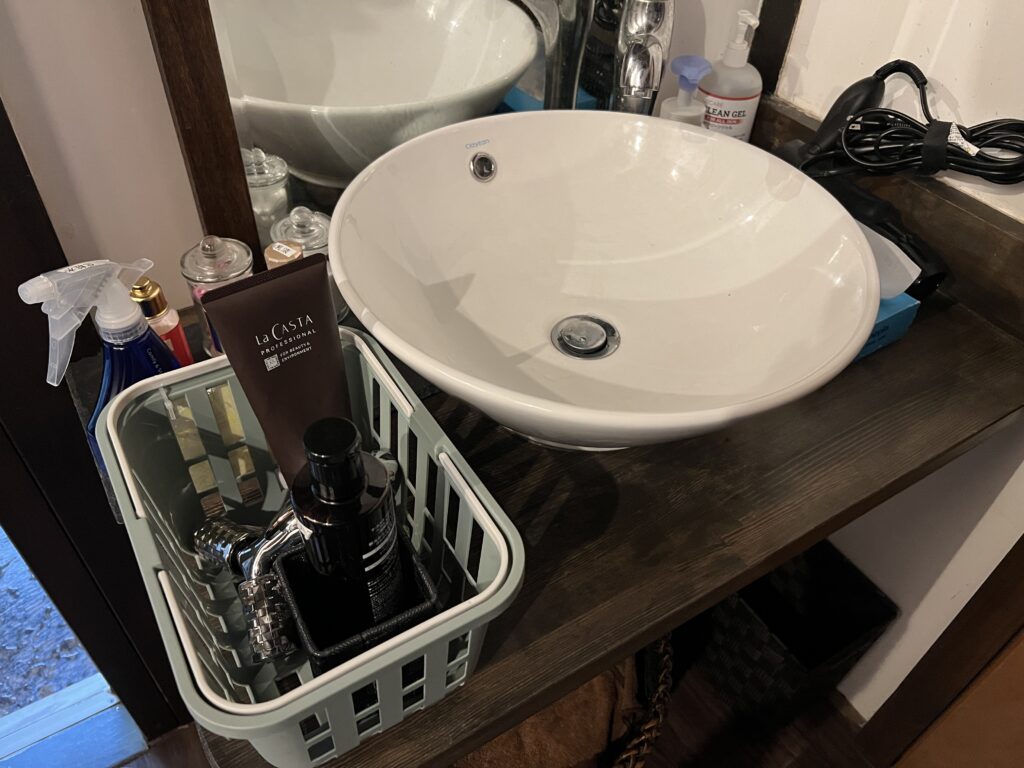 カゴの中にシャンプー。無添加orハーブの香りを選ぶことができました。