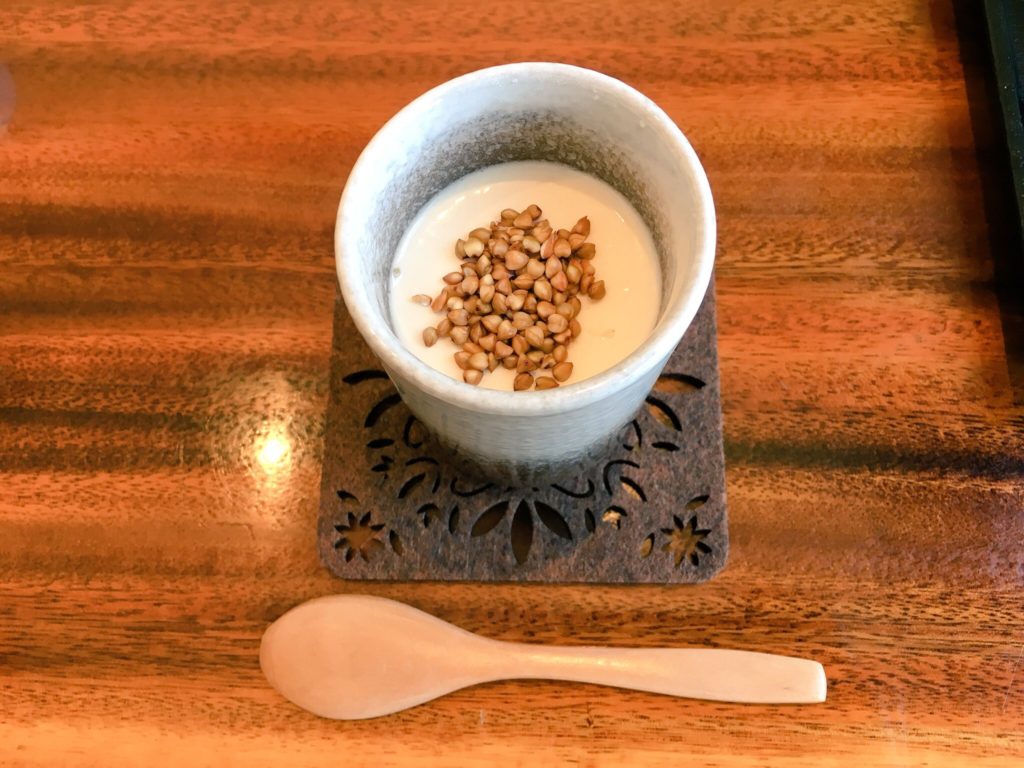 そば茶の香りを生かしたプリンもさることながら、上に乗っているカリカリのそばの実も絶妙なバランスです。食べ方が下手で最後の方はそばの実がなくなってしまい残念でした(笑)