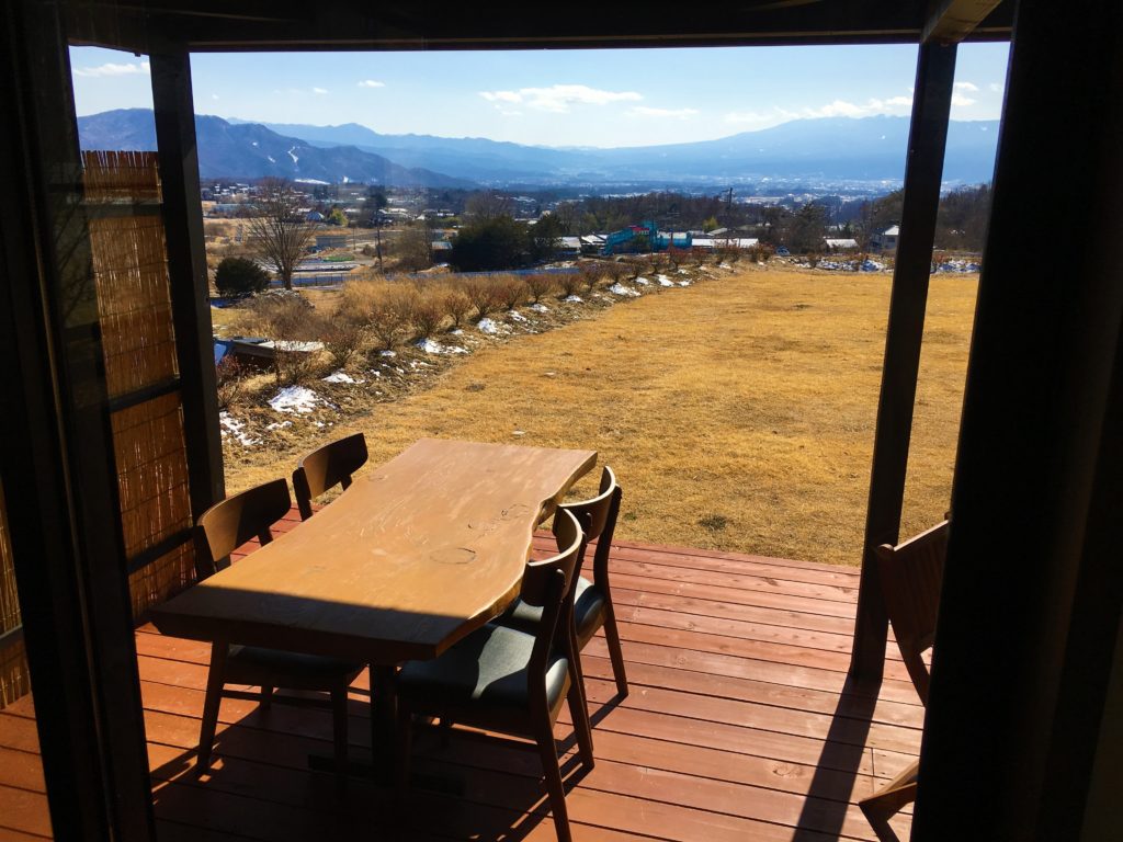 店内からは景色が見下ろせます。御代田や佐久周辺が見えてるのかな?何しろロケーションは最高です。