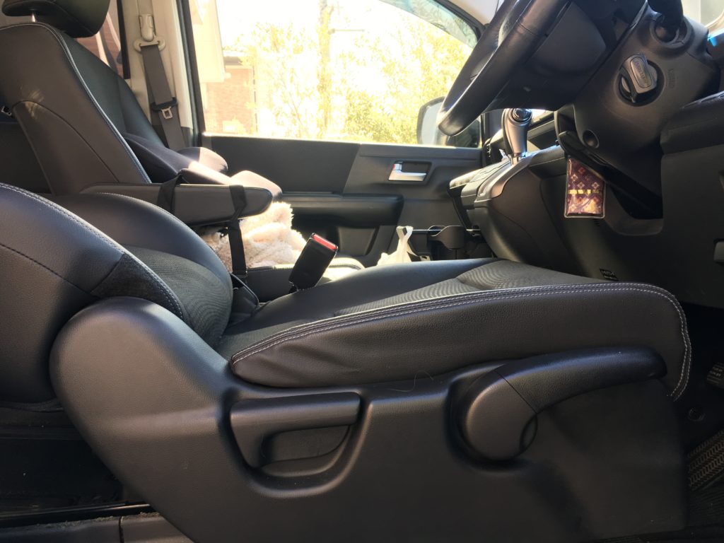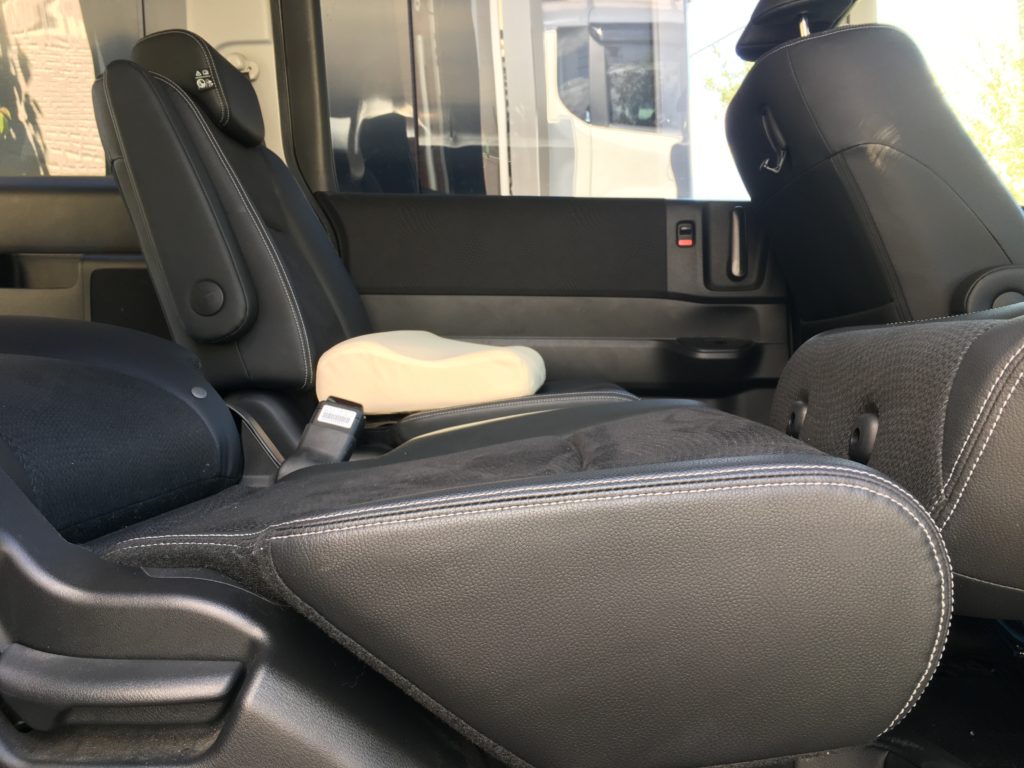 分かりにくいかもしれませんが、座面と背もたれに10センチ弱の段差・座面と運転席背もたれに数センチの段差ができています。
