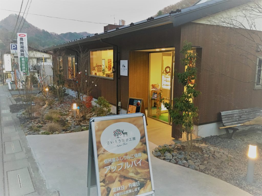 写真の奥に見える病院の駐車場がさいとう菓子工房の駐車場でもあります。