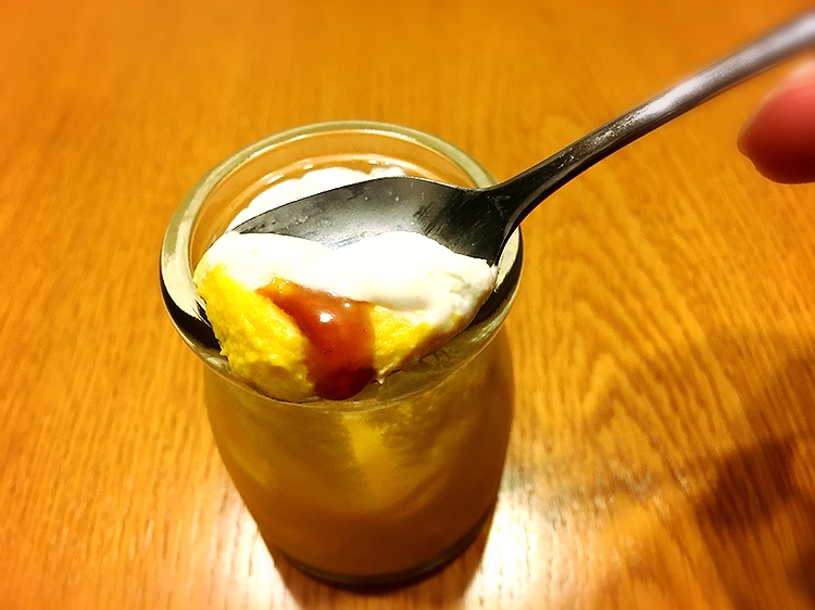 上のクリームも甘くなくてかぼちゃプリンの邪魔をしません。