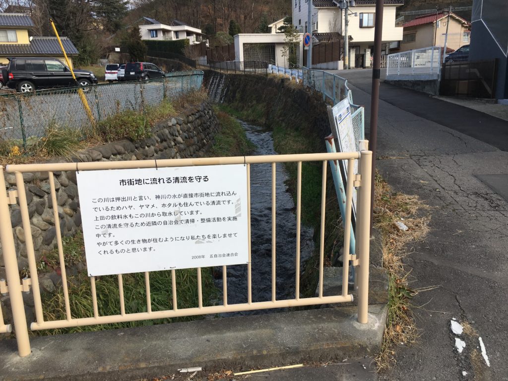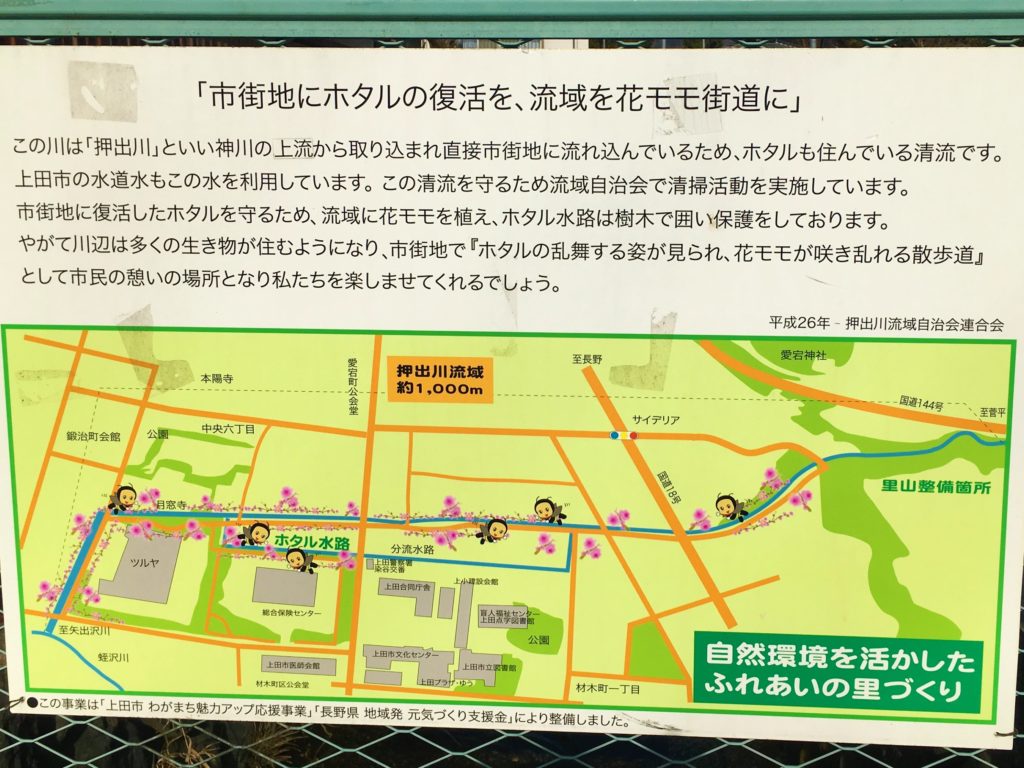 ・上田市街地を流れる押出川とホタル水路。