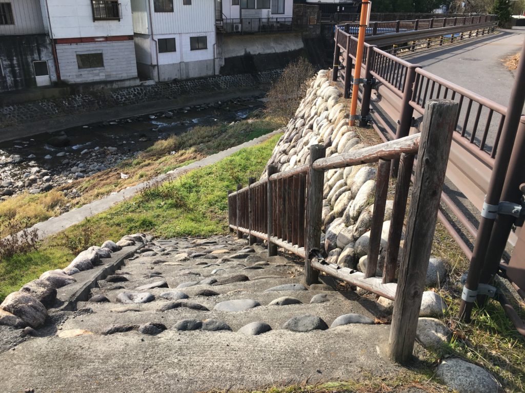 川沿いの家からは川に出られる道が随所にあります。