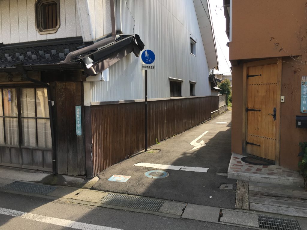 この細い通りを抜けていきます。