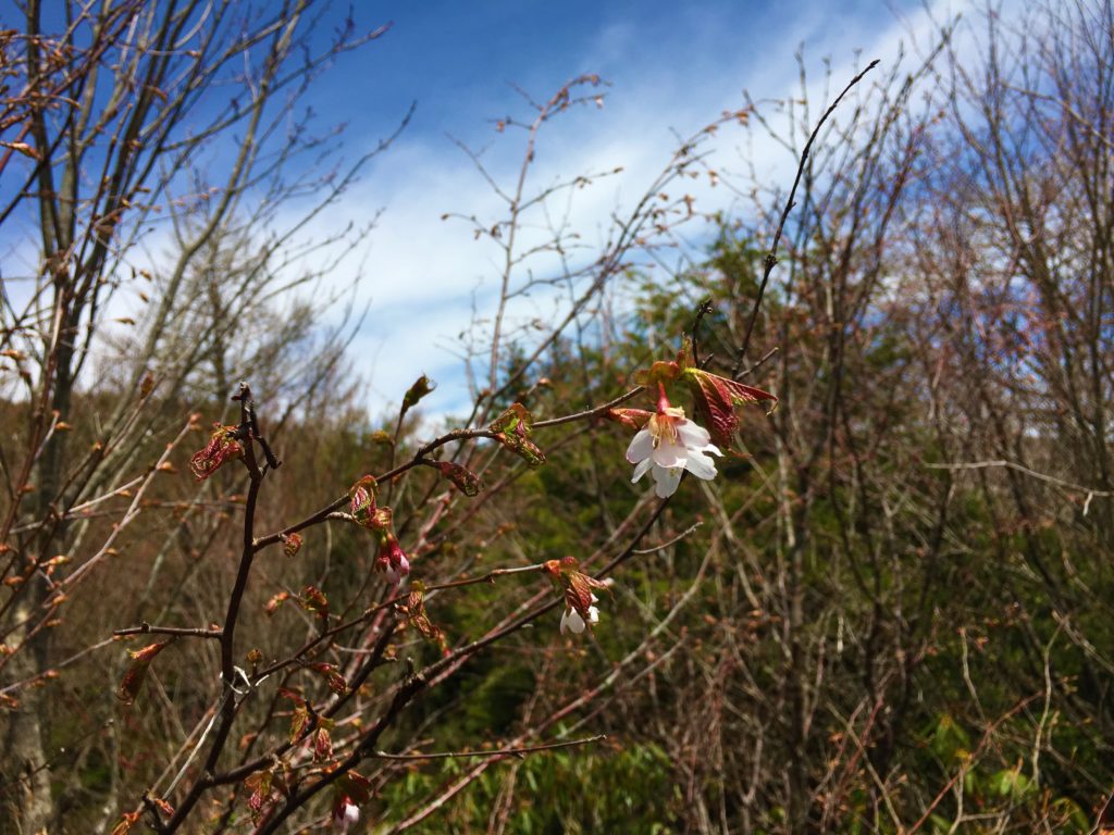 歩き始めるとすぐに今回唯一の花となるミネザクラが咲いていました。