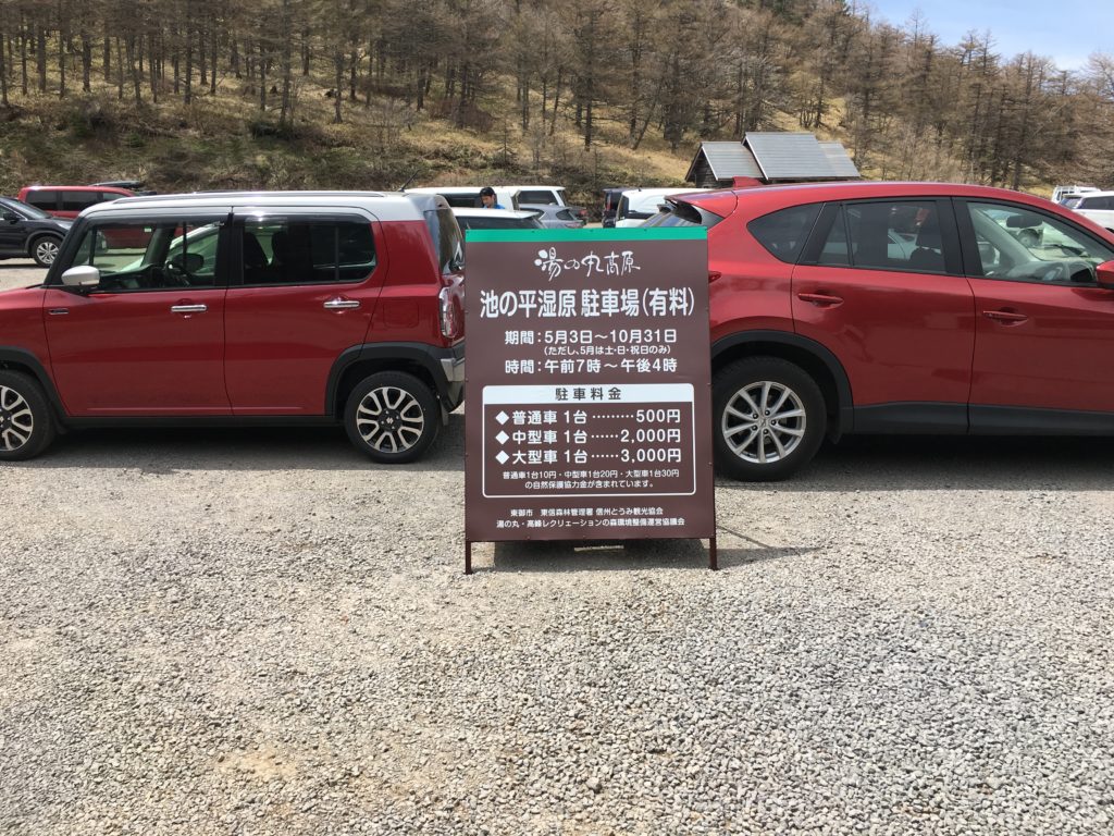 ここからは少し細い道になりますが、もう少し行くとと池の平湿原駐車場に到着です。